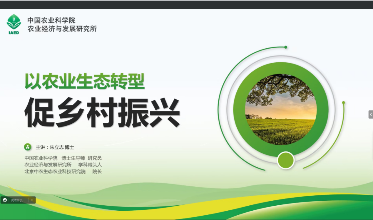 朱研究员主要分享了三个问题,农业生态转型的总体方案、农业生态转型的科技体系以及农业生态转型的理论创新。