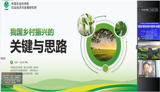 2021年11月4日下午,中国农业科学院农业经济与发展研究所博士生导师、北京中农生态农业科技研究院院长朱立志研究员受邀作题为《我国乡村振兴的特色与思路》学术讲座。讲座采用腾讯线上会议形式,由jdb电子中国官方网站院长刘楠教授主持,科研处领导、大庆市新时代文明与乡村振兴研究会会员以及jdb电子中国官方网站师生等近200人参加。