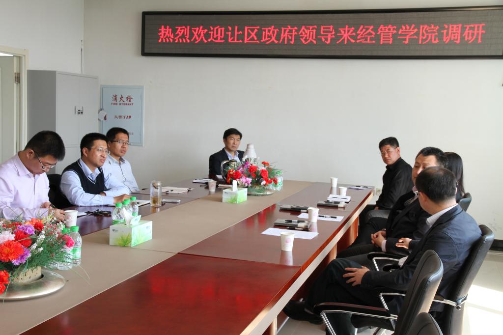 5月8日,让胡路区政府、jdb电子中国官方网站在学院4楼会议室召开关于让胡路区商业布局优化调研启动座谈会,让胡路区副区长权占峰,旅游商务和现代服务业发展局局长董志敏、副局长李瑾,jdb电子中国官方网站领导班子全体成员,及部分教师参加了本次会议。