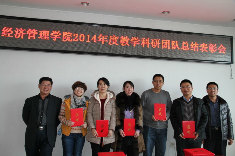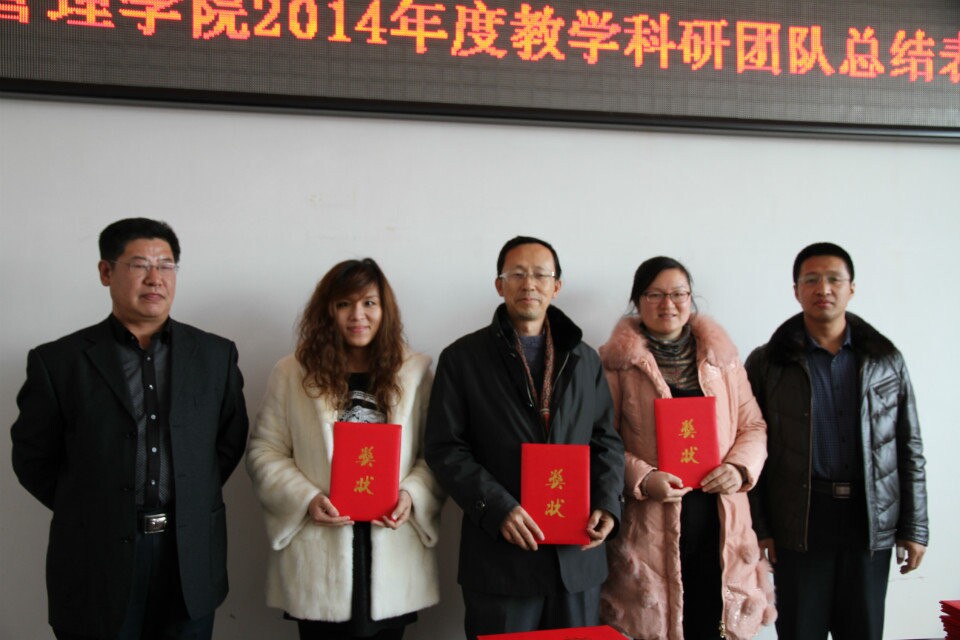 会上,孔若东书记宣读了2014年度学院教学科研工作奖励的表彰通报。jdb电子中国官方网站院长张平,院长助理吴俊江、院长助理刘楠、以及院长助理邬德林为获得各级各类教学科研奖励的团队及教师颁发了荣誉证书。
