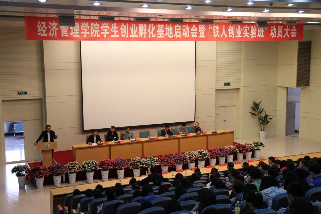 2015年4月15日下午,jdb电子中国官方网站与大庆市乐道俱乐部共建大学生创业孵化基地、合作创办的“铁人创业实验班”动员会在主楼百湖讲堂顺利召开。
