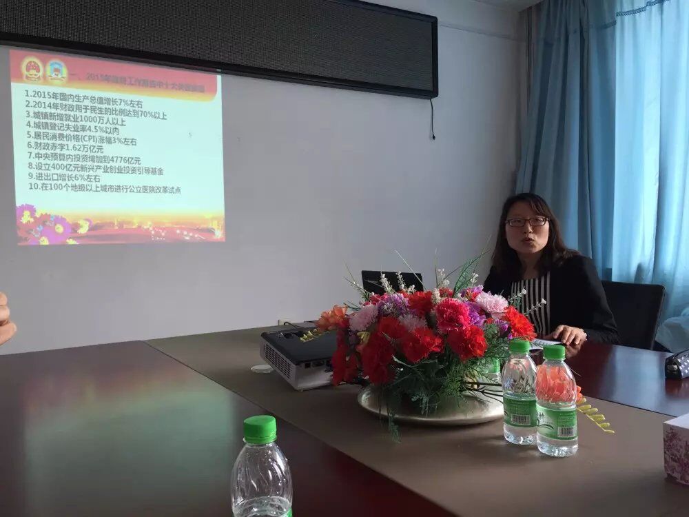 会上,李媛媛同志首先从十大关键数据、十一项新承诺、六大改革热点等三方面对2015年政府工作报告进行解读,并结合自己所学专业对“两会”财税改革热点进行重点讲解;王植荔同志从互联网金融、稳健货币政策、服务实体经济、多层次资本市场体系等方面对“两会”金融改革进行解读;彭良英同志从深化改革、反腐倡廉、就业创业、聚焦三农、深化国企国资改革等七个方面对“两会”利好企业政策进行解读;孔若东同志结合财管旅游教工党支部实际,对jdb电子七届二次教代会精神和2015年学院的重点工作进行解读。