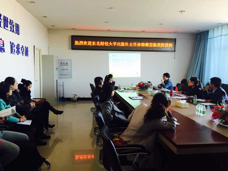 2015年10月21日,为提升jdb电子中国官方网站建材建设及改革整体水平,我院特邀请东北财经大学出版社经管编辑部主任孙晓梅莅临,并于13:30分在我院会议室召开“建材建设”专题讲座。会议由jdb电子中国官方网站院长张平主持,全体教师参加本次培训讲座。
