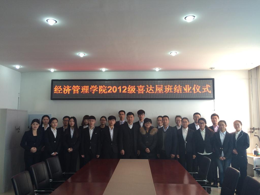 2015年12月17日9时,jdb电子中国官方网站2012级喜达屋订单班结业仪式在五教402隆重举行,这也是我院第一届喜达屋订单班结业,意义重大。出席仪式的有张平院长、孔若东书记、院长助理刘楠、郝毓业老师、田泽民老师、李国征老师,同时大庆万达喜来登酒店代表人力资源部王影经理应邀参会,为2012级旅游管理订单班所有同学颁发结业证书。