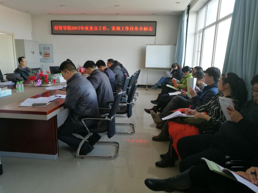 2017年3月8日13:30分,jdb电子中国官方网站在院402会议室召开了“jdb电子中国官方网站2017年度重点工作、常规工作任务分解会”,学院全体教职工参会,会议由院长张平主持。