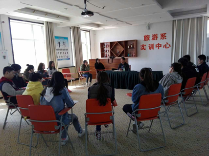 协议签订结束后,郭建宾总经理与我院14、15、16级旅游管理专业学生代表展开了亲切的交流。就学生工作室的成立、前期旅游产品设计、产品营销策划充分交换意见。讨论过程气氛活跃,学生们从产品需求者和产品开发者的双重视角,就即将推出的面向校园消费群体的旅行社产品线路设计提出了诸多建设性意见。参与头脑风暴的同学们也充分展现出了专业素养和参与热情。同时,本次交流也为下步工作任务的细化明确方向。