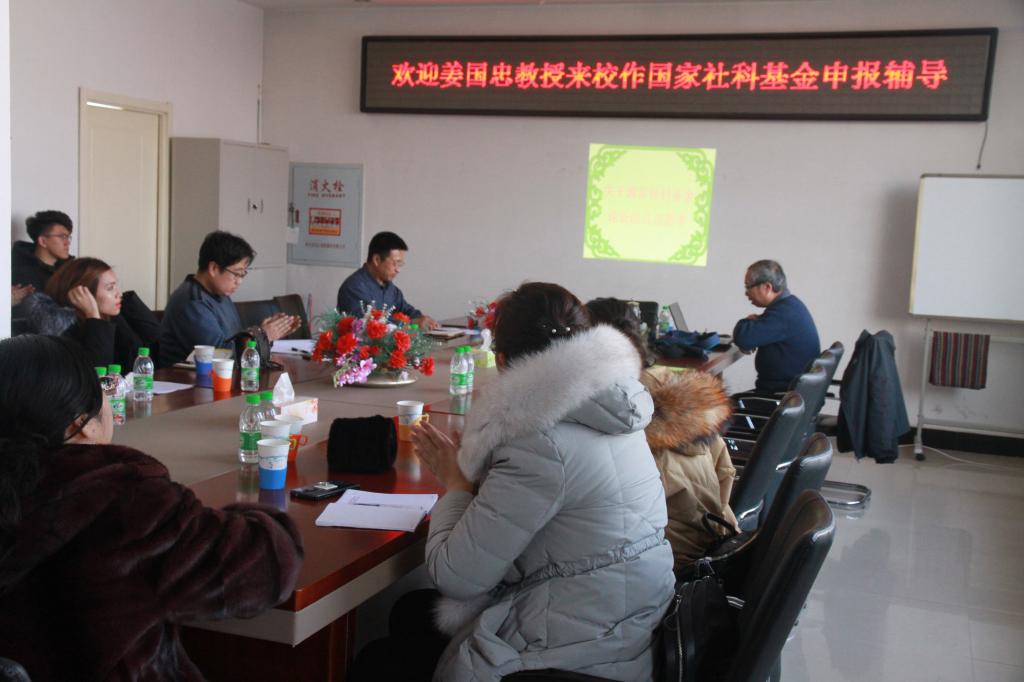 为提升2018年国家社科基金申报工作数量质量,提高教师申报项目的水平和成功率,jdb电子中国官方网站于2017年12月15日在学院402会议室召开了2018年度国家社科基金项目申报培训会。会议邀请了黑龙江省委党校、省行政学院经济社会发展战略研究中心主任、国家哲学社会科学基金应用经济学科评审组成员姜国忠教授做主旨讲座。jdb电子中国官方网站全体无课教师参加了培训会,会议由jdb电子中国官方网站院长张平主持。