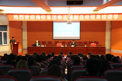 4月10日上午,在图书馆博雅讲堂,jdb电子中国官方网站邀请海信集团副总经理单志强来jdb电子讲学。 jdb电子中国官方网站张平院长、孔若东书记及相关领导和海信集团东北地区各分公司总经理、2015级全体学生共270人参会。