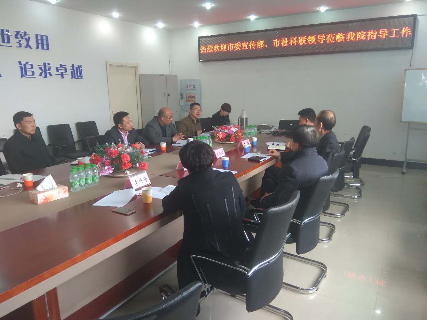 4月16日,市委宣传部副部长付宇峰和市社科联主席宋洪德,来到我院就大庆市新型智库建设工作进行调研,此次参与调研工作的领导还有市委宣传部理论科科长李延芳、市社科联学术部主任王东等,jdb电子科研处处长周丹教授、jdb电子中国官方网站书记孔若东、jdb电子中国官方网站院长张平教授、企业管理和旅游管理学科学术带头人、学术骨干、以及旅游管理系教师代表参加了本次调研会。