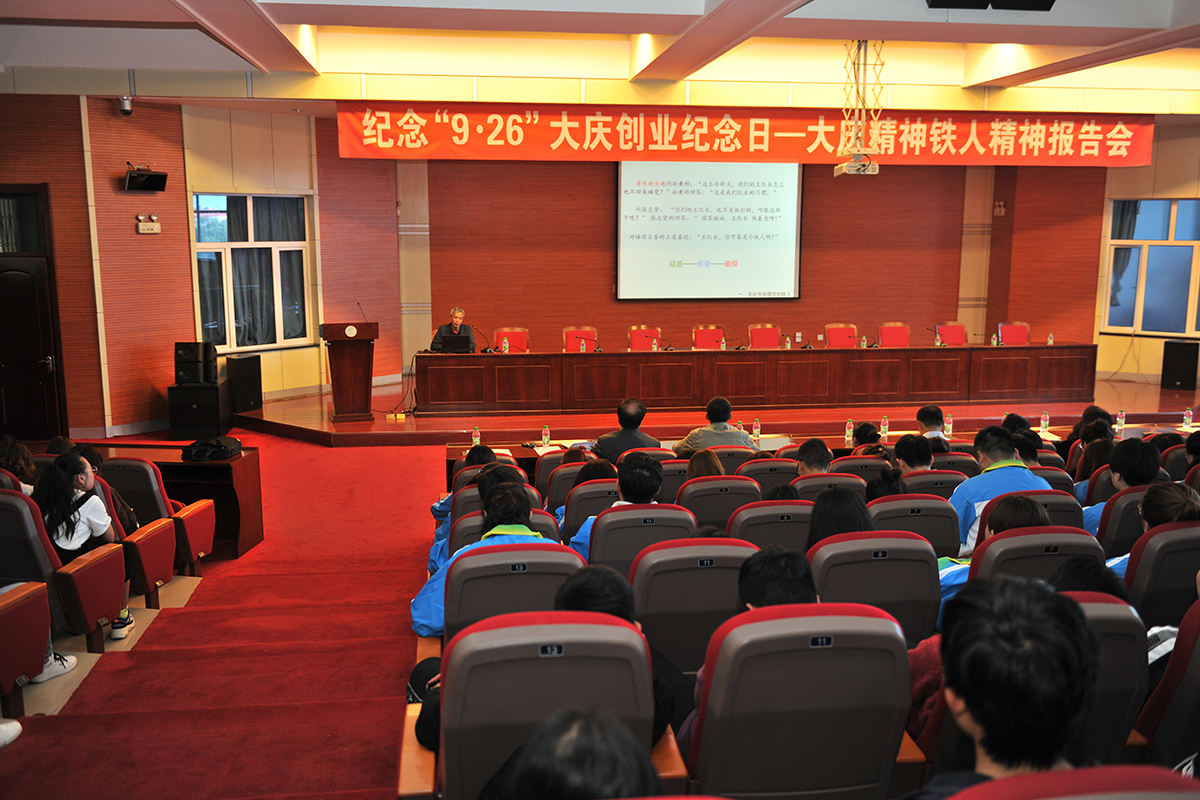 为纪念大庆油田发现59周年,9月12日,由大庆市社会科学界联合会、jdb电子中国官方网站主办,大庆市高校思想政治教育学会、大庆市经济学会承办的纪念“9·26”大庆创业纪念日——大庆精神铁人精神报告会在jdb电子博雅讲堂举行,大庆市社科联副主席席书涛、马克思主义学院党总支书记赵桂英、jdb电子中国官方网站党总支书记孔若东等领导,与300余名师生代表共同参加了报告会,会议由学校总督学、大庆精神铁人精神研究与应用领导小组办公室主任李华主持。