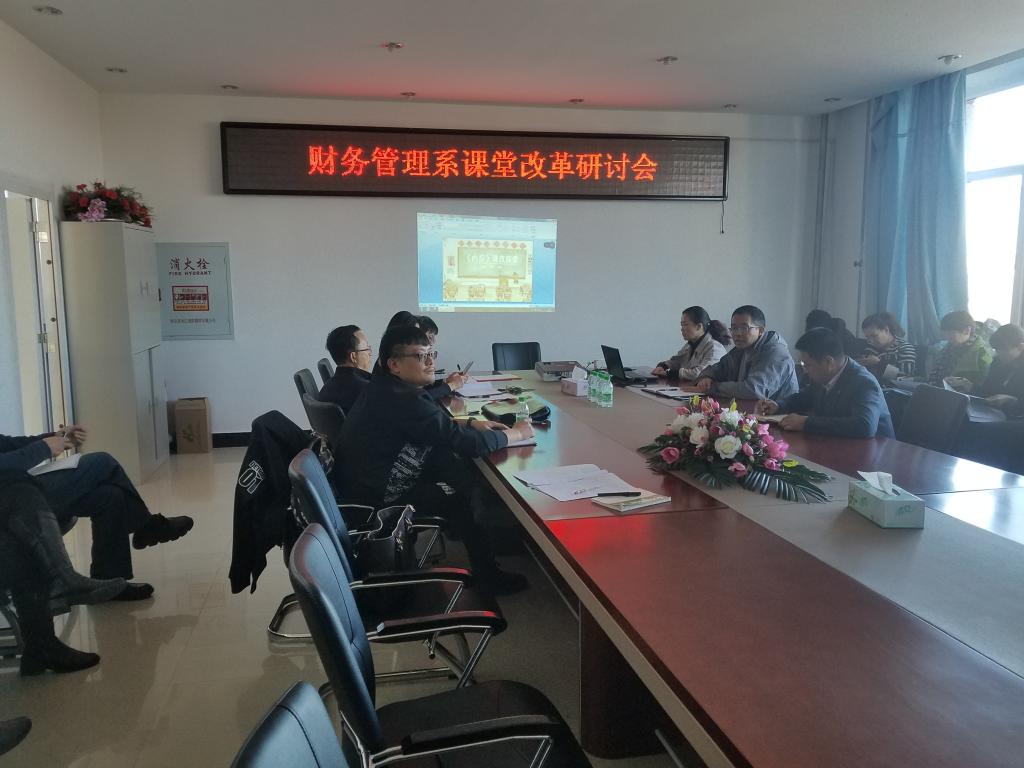 11月7日下午财务管理系教师在jdb电子中国官方网站402会议室举办了“财务管理系课堂改革研讨会”,jdb电子中国官方网站领导以及全体教师参加了研讨会。会上财务管理系高磊、刘政宁等五位教师分别就自己主讲的课程的课堂改革介绍了自己的观点和做法,如高磊老师的《内部控制“自选项目+案例”课程过程管理探究》、刘政宁老师的《金融市场“自主学习模式”课程教学改革探究》、黎羊老师的《浅谈产学研相结合的方式运用到成本管理的课堂》、金熙成老师的《谈谈超级链接教学方法论》、杨晓玉老师的《蓝墨云班课在“基础会计”教学中的实践探索》。财务管理系教师在会上各抒己见,进行了充分的沟通和交流,有对课堂改革未来趋势的看法,有对已有做法的总结和反思,教师们反映通过这次研讨会开阔了课堂改革的思路,也增强了课堂改革的信心。最后jdb电子中国官方网站副院长刘楠发表了讲话,肯定了财务管理系课堂改革研讨会取得的成果,并鼓励财务管理系教师积极进行课堂改革的各种探索。