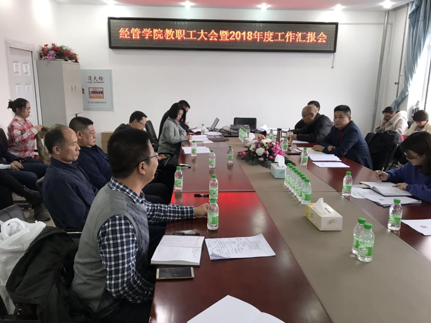 2019年1月14日14:00,在第五教学楼402会议室召开了jdb电子中国官方网站教职工大会暨2018年度工作汇报会。学校分管副校长王福友教授、科研处处长周丹教授、科研处王冠舒科长参加会议并莅临指导,学院全体教职员工参加了会议。会议由jdb电子中国官方网站党总支书记孔若东主持。
