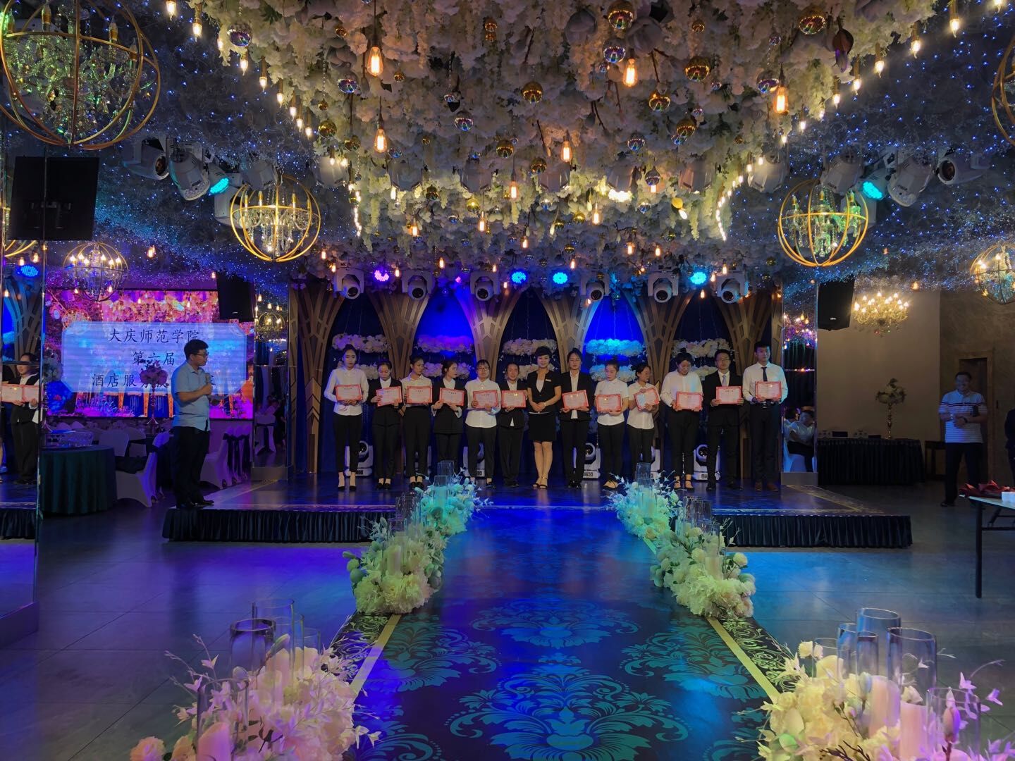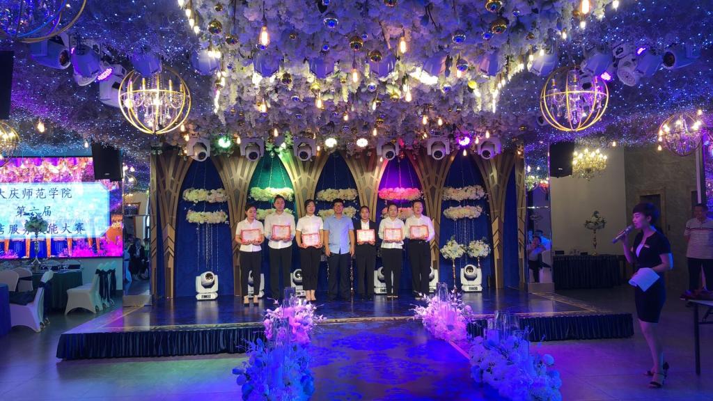 jdb电子中国官方网站第六届酒店服务技能大赛经过近一个月的准备、理论讲授、实操训练于2019年6月27日上午10时在西华酒楼开赛,此次大赛由2018级旅游管理专业和专升本全体学生共计82人参赛。大赛从仪容仪表、站姿、走姿、托盘、铺台布、摆十人台、折口布花等环节进行考核,经过激烈的角逐,共产生一等奖三名、二等奖六名、三等奖12名。此次大赛通过讲学练赛相结合的方式进行,学生提升了实践技能,增强了对酒店服务的理解和认知。