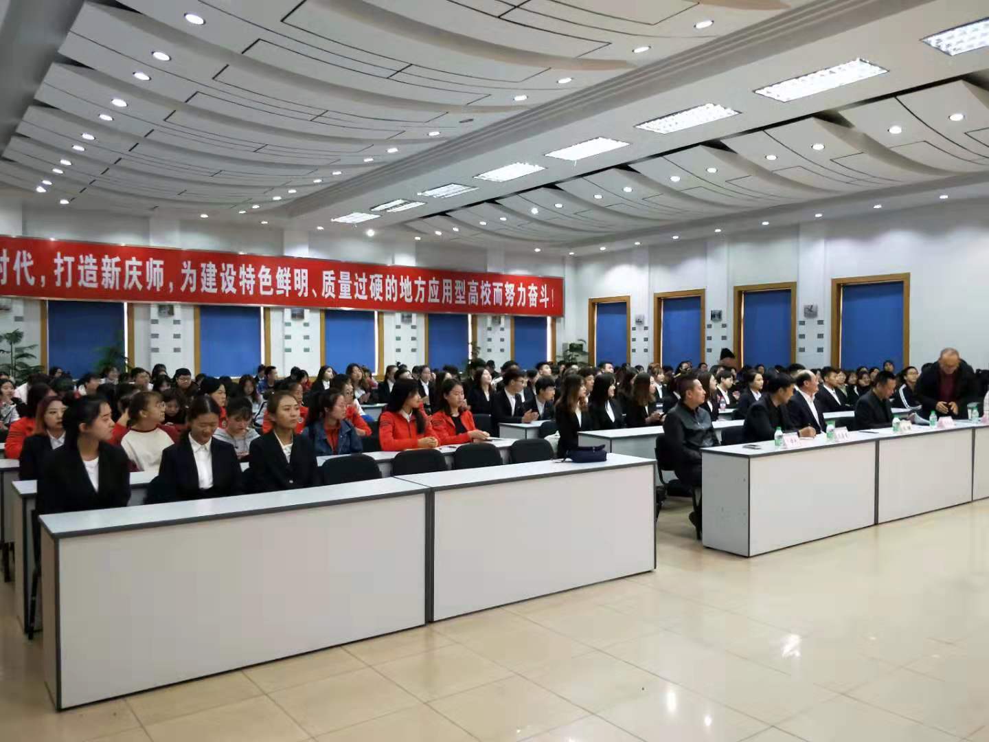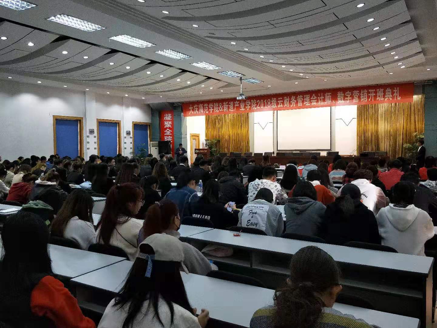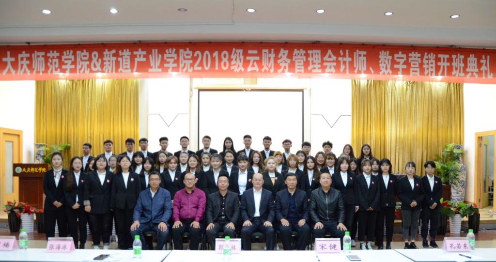 产教融合培养应用型经管类人才,jdb电子与新道科技有限公司合作,于2019年10月23日下午15点30分在jdb电子中国官方网站铁人讲堂举行2018级云财务管理会计师、数字营销开班典礼。新道科技有限公司高级副总裁宋健先生、黑龙江省总经理张海冰先生、黑龙江省区域经理王学松先生,jdb电子中国官方网站副校长郭崇林教授、jdb电子中国官方网站孔若东书记、刘楠院长、部分教师代表、辅导员、2018级财务管理专业和市场营销专业全体学生,2019级学生代表参加了此次开班典礼,典礼由刘楠院长主持。