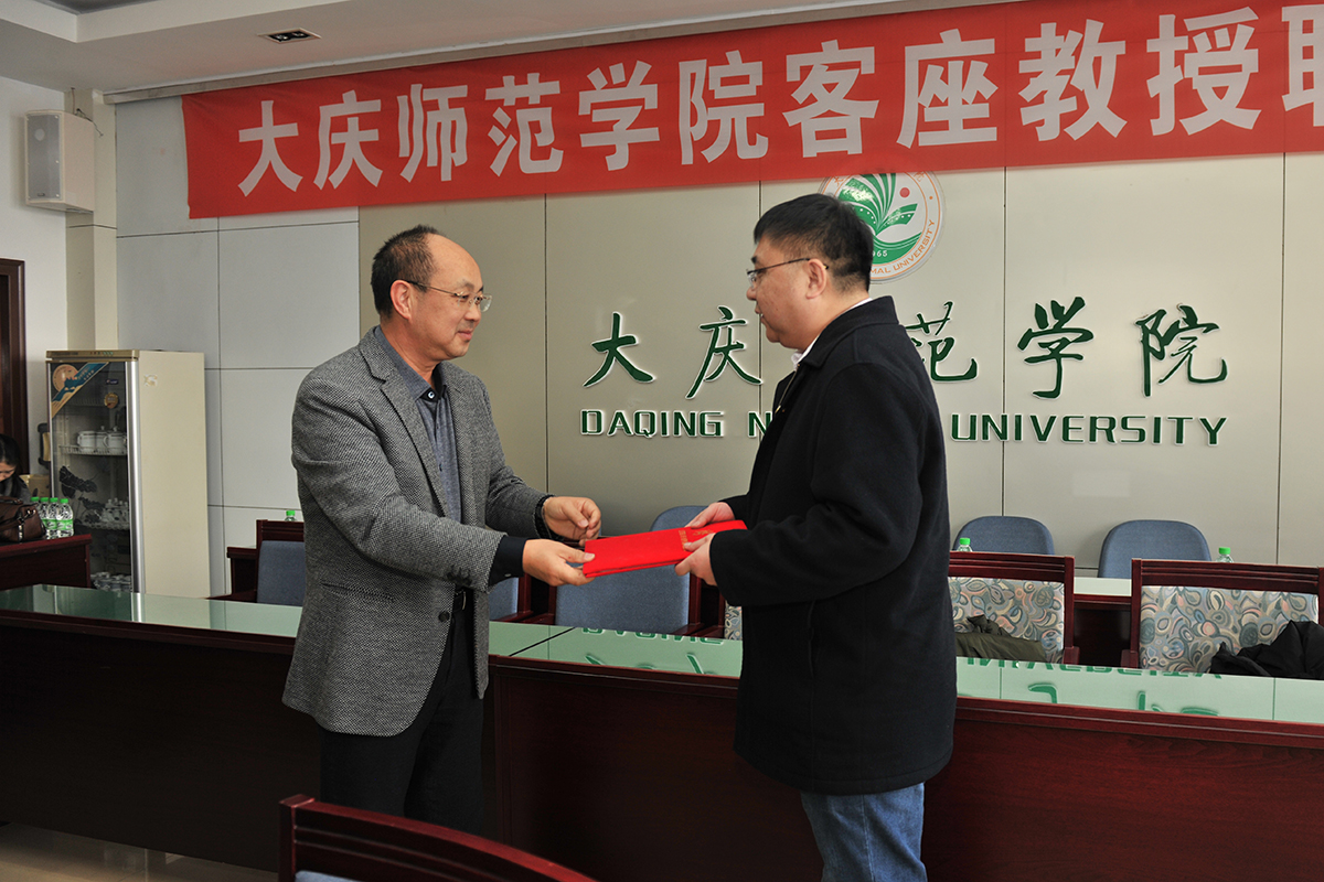 2019年11月13日下午在主楼729会议室,jdb电子举行隆重聘任仪式,聘任大庆油田水务公司总会计师、中油财务公司副总经理徐彬同志为jdb电子客座教授。校长乔志和教授、副校长王福友教授、纪委书记滕强教授、教务处处长徐权教授,人事处处长张平教授,科研处处长周丹教授、jdb电子中国官方网站书记孔若东、院长刘楠及全体教师和部分学生代表参加了聘任仪式。聘任仪式由纪委书记滕强教授主持。