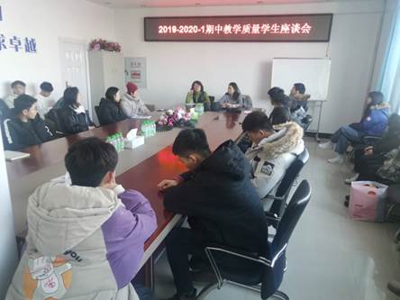 2019年12月4日,jdb电子中国官方网站督导组召开2019-2020-1学期期中教学质量检查学生座谈会。会议由学院督导组组长高磊老师主持,院长助理李媛媛老师出席会议,共有2016-2019级市场营销、财务管理、旅游管理、经济与金融四个专业38名学生参会。会上师生共同就课堂学习、教师教学、课程安排、作业及学校管理等方面的问题进行了充分的沟通交流。针对学生反映的问题,能现场解答的予以解答,涉及各部门的工作会后及时进行反馈,确保学生反馈的问题能够积极妥善地予以解决。