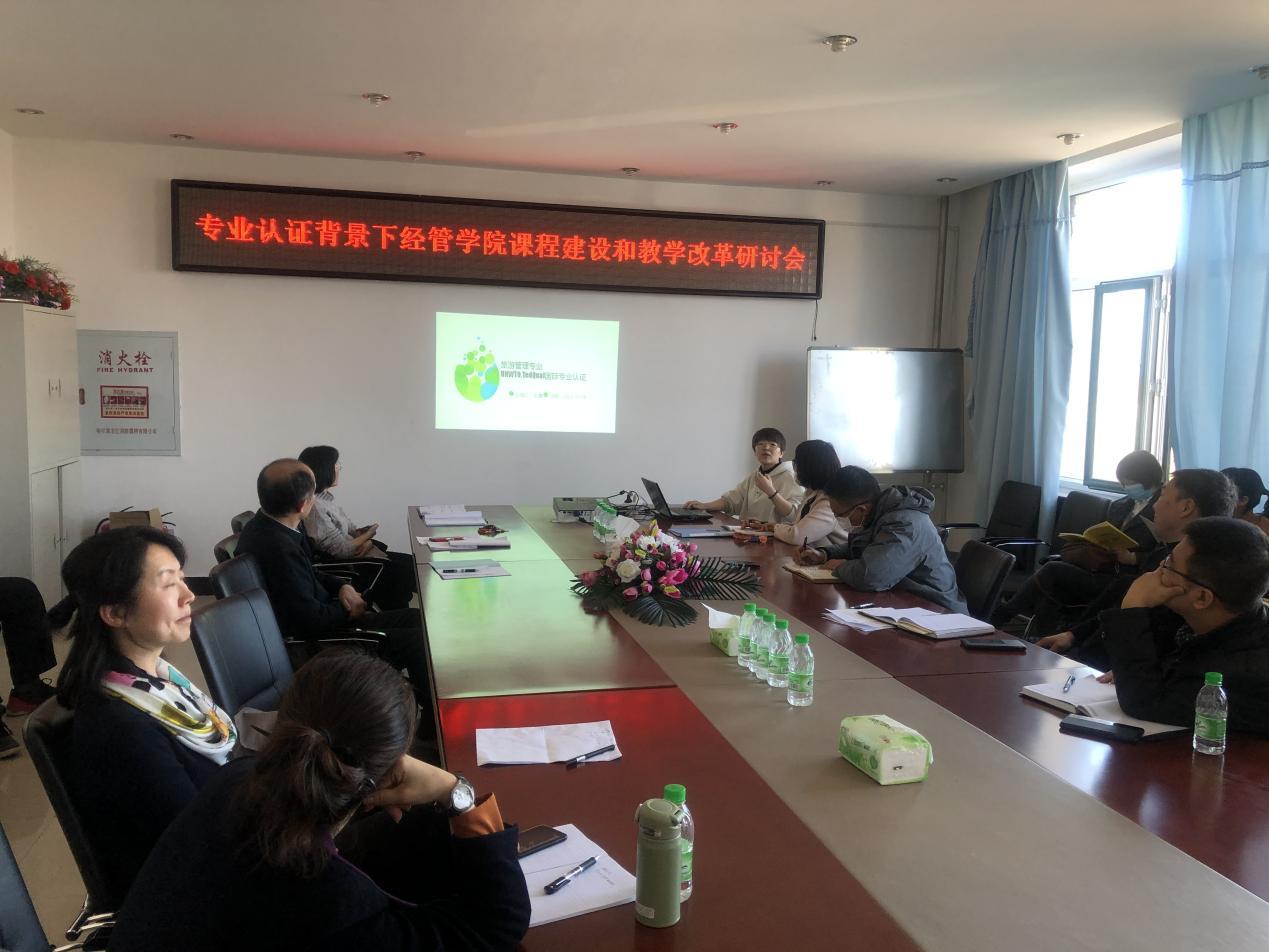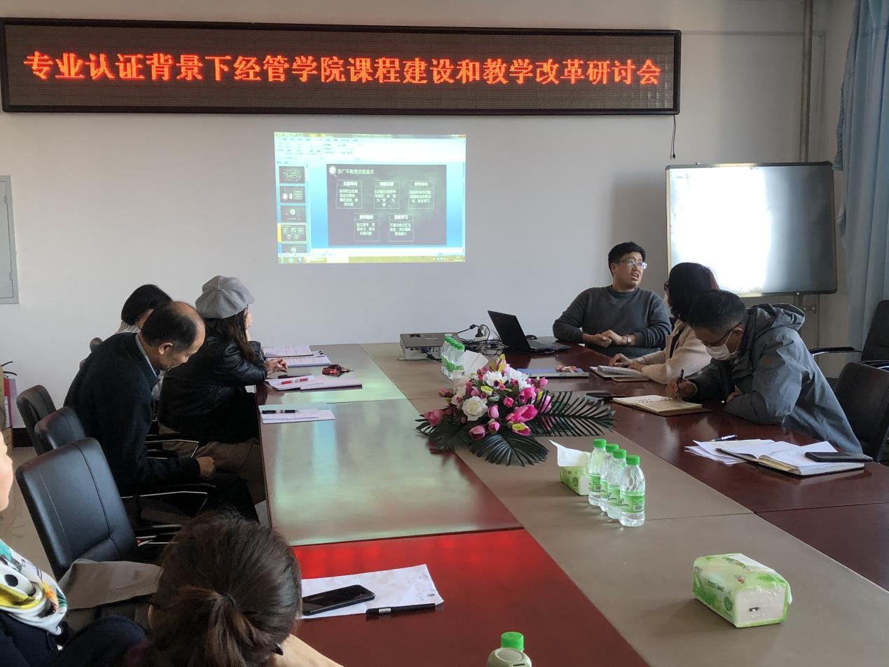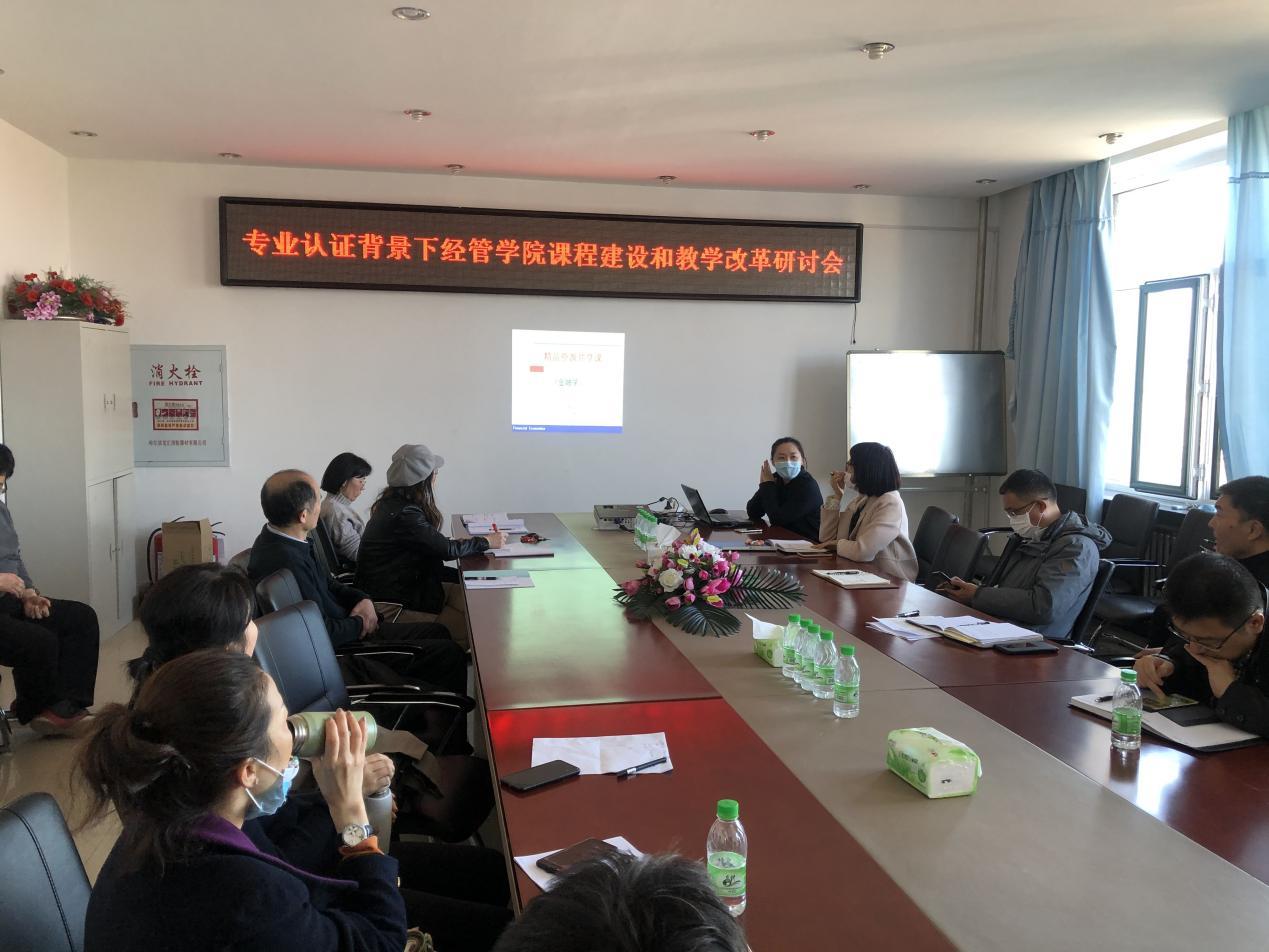 2021年3月24日下午14:00,jdb电子中国官方网站在第五教学楼402会议室召开了“专业认证背景下经管学院课程建设与课堂教学改革专题研讨会”。学院领导和全体教职工参加了研讨会,会议由教学副院长李媛媛主持。
