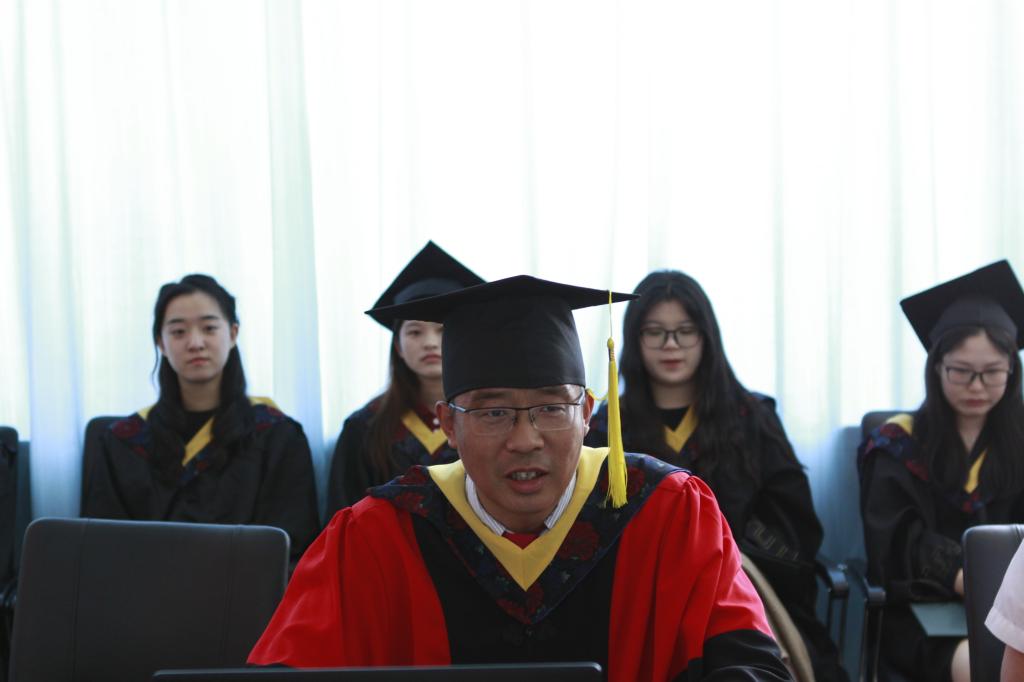 jdb电子中国官方网站学士学位授予委员会主任、院长刘楠教授讲话。他在讲话中代表学校祝贺同学们扬起新的风帆,向为毕业生成长付出辛勤劳动的全体教职工和家长朋友们致以崇高的敬意。并谈到两个方面,一是明德,嘱咐同学们坚定前进方向,要立大志、明大德、成大才、担大任,成为担当民族复兴重任的时代新人;二是能事,要视野宽、胸怀广、有格局,强调校训,“自强不息,臻于至善”。