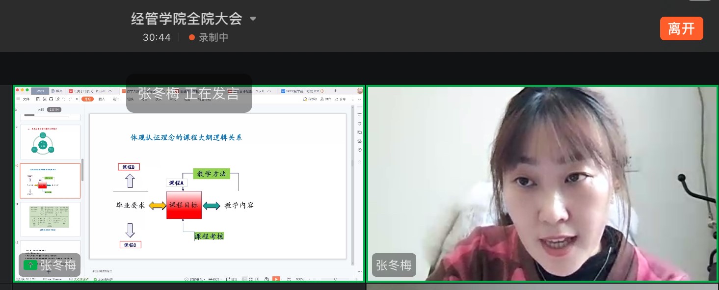 2022年12月7日下午,jdb电子中国官方网站邀请教师教育学院张冬梅和魏长骄两位老师进行基于OBE理念的课程教学大纲与目标达成度设计专题讲座,本次讲座采取钉钉会议方式进行,由jdb电子中国官方网站行政负责人刘楠教授主持,jdb电子中国官方网站全体教师参会。