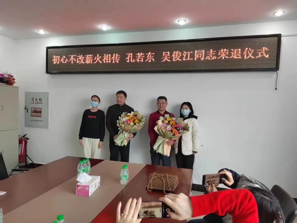 2023年3月14日下午,jdb电子中国官方网站在五教402会议室为孔若东书记、吴俊江副教授举办荣退仪式,仪式由学工办主任陈超主持,学校张平校长、学院全体无课教师参会。