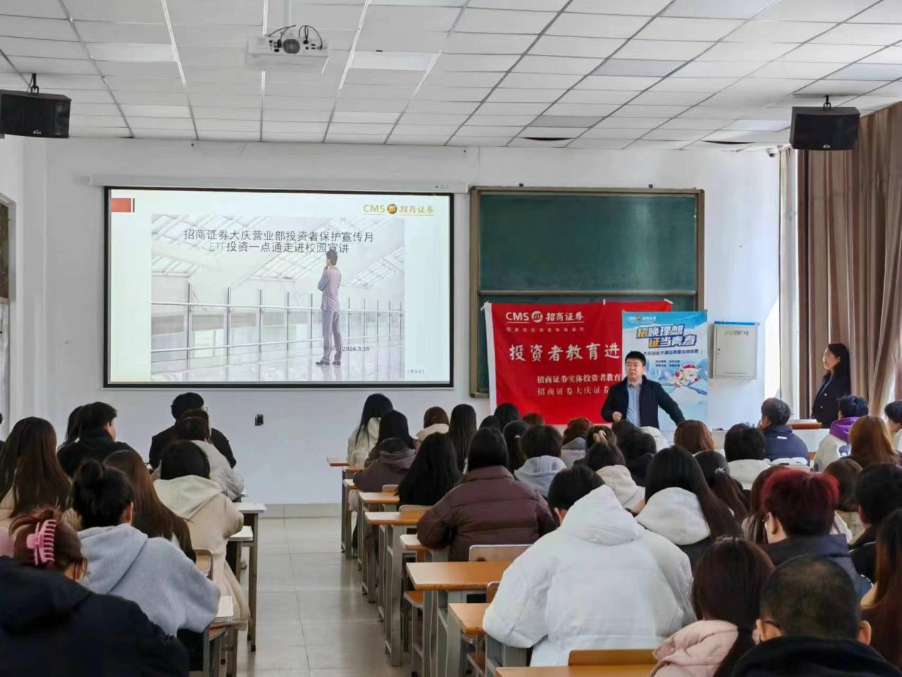 为增强学生就业创业意识,了解当前行业发展现状和未来发展趋势,名方向、定目标,进一步帮助同学们树立正确的就业观和择业观,2024年3月18日上午10:00jdb电子中国官方网站邀请招商证券大庆营业部于良经理一行入校进行就业宣讲会,院长刘楠、办公室主任曲晔、辅导员贺诗淇老师、莫迟老师以及2020级、2021级经济与金融专业、财务管理、市场营销专业学生共同参会。