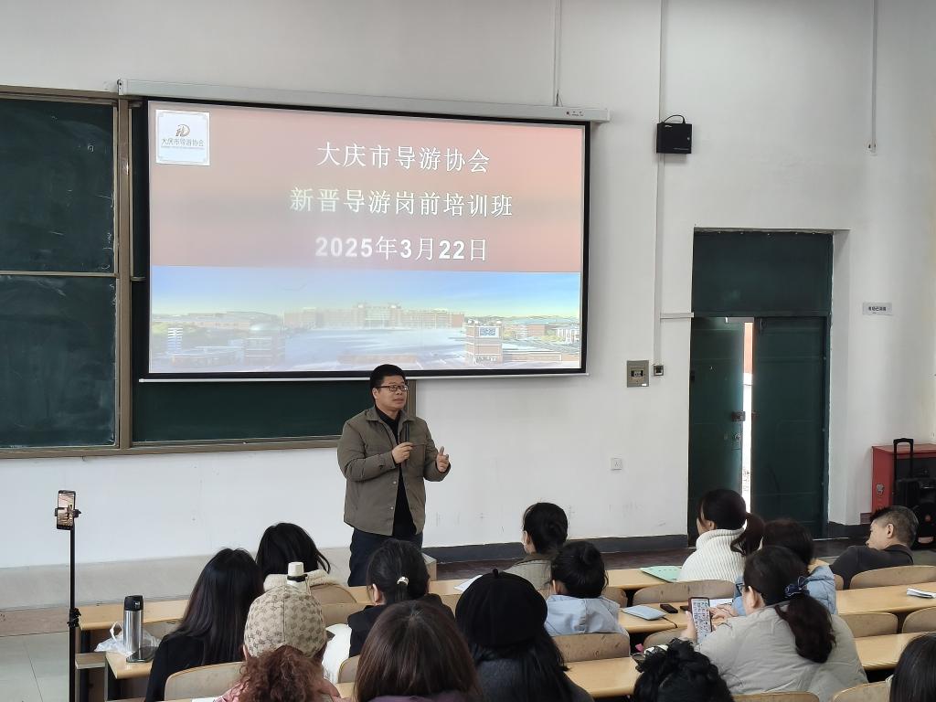 为强化新晋导游职业道德和服务意识,提高专业能力和服务质量,举办了2025年大庆市新晋导游岗前培训班。此次培训班由大庆市文化广电和旅游局主办,jdb电子中国官方网站、大庆旅游开发与管理研究中心和大庆市导游协会承办。培训的开展旨在认真落实《中华人民共和国旅游法》《导游人员管理条例》《导游服务规范》等相关法律规定,严格落实省文旅厅要求开展的“持证导游进景区实训”活动要求。本次培训采用线下培训与线上直播相结合,培训形式以集中理论授课、经验交流互动和现实实训的方式进行,培训讲师团队包含国家金牌导游、黑龙江省金牌导游、高级导游、法律专家、高级礼仪培训师、摄影大师等,培训内容涉及导游职业生涯规划、导游服务流程、夕阳红旅游专列导游服务规范、出境领队服务操作流程、导游执业规范、涉旅法规案例解读、旅游摄影技巧等方面的内容。