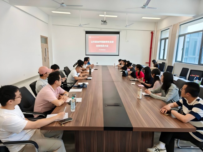 2025年6月24日,公共基础学院教师党支部于高淳校区智圆楼B区529会议室召开全体党员大会。本次会议应到29人,实到23人,6人因病因事请假。会议由党支部组织委员杨振鹏、纪检委员李磊分别主持。