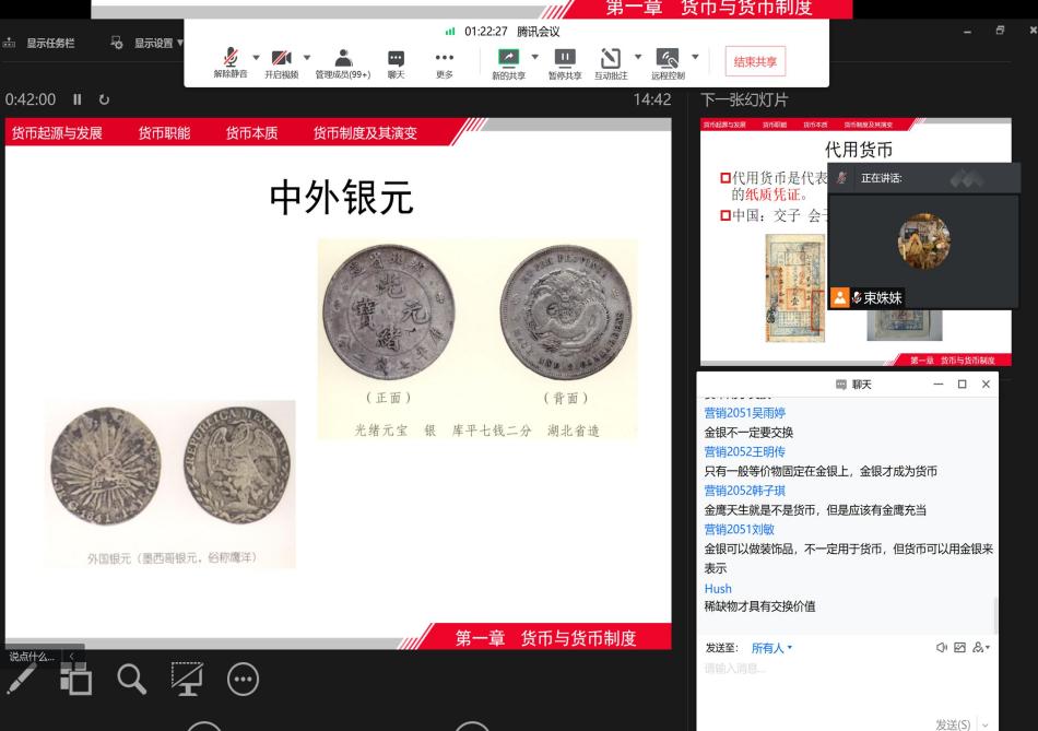 为保证线上教学工作顺利进行,金融税收系提前谋划,从容应对,多方预案,严格把关。期间不断完善课程群信息,确认教师直播授课平台,任课教师、教学管理人员、辅导员积极交流,默契配合,确保每位学生进班级群,一个都不能少。按照教学计划,我系第一周共计32门次、 76个教学班通过“中国大学MOOC慕课堂”“学习通”“雨课堂”“腾讯会议”“QQ家校师生群”等平台顺利在线上“云聚首”。
