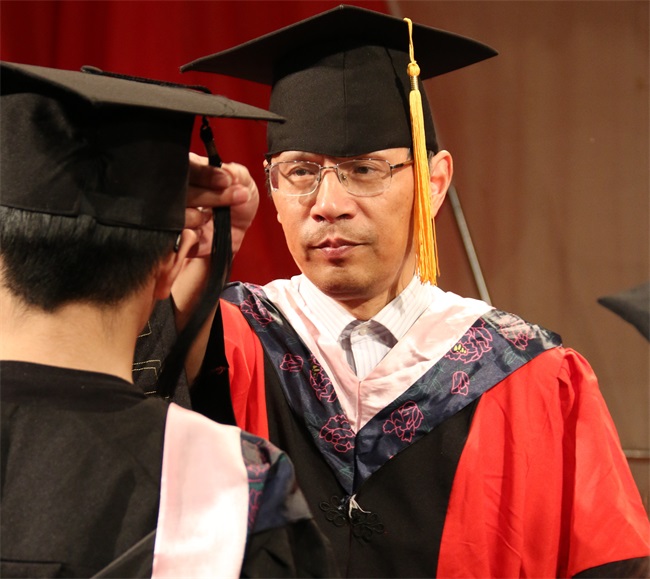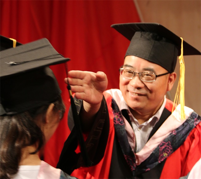 beat365英国官方网站党委书记鞠明富为毕业生授予学士学位证书并拨过学位帽上的流苏
