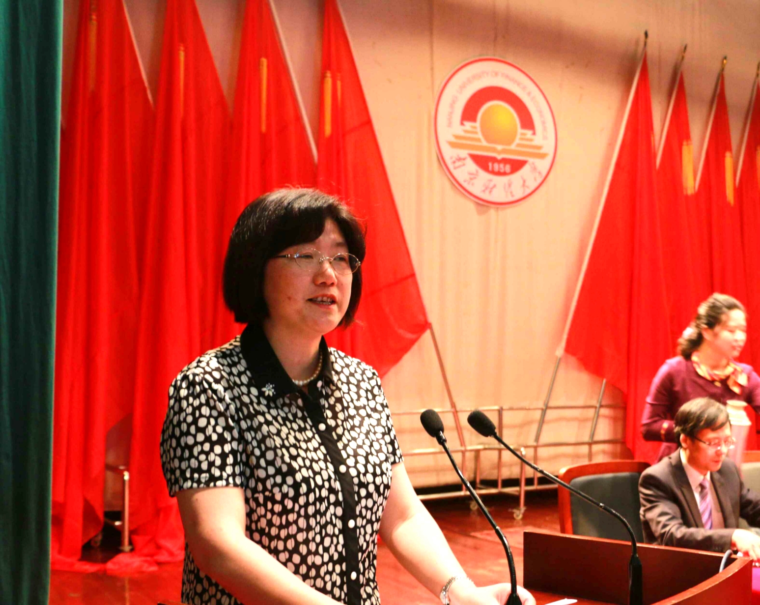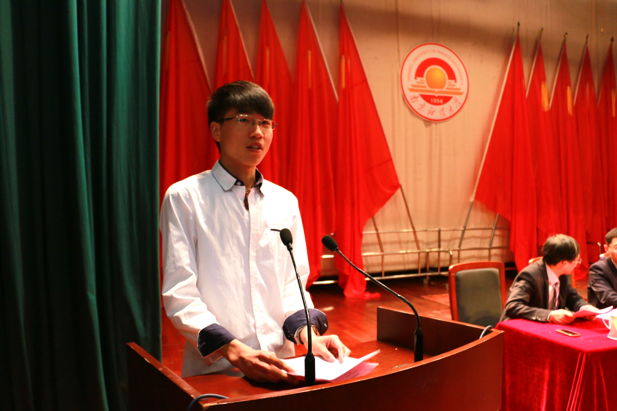 会计1255班颜妮同学发言代表全体在校生向学长学姐们送上最真挚的祝福,祝愿他们在未来的征程中驰聘万里,走出属于自己的精彩人生。会计1160班泮淑南同学、金融1154班彭瑞同学代表全体毕业生发言,他们向母校和老师表达了由衷的感谢和崇高的敬意,并表示将会永远铭记母校和师长的教诲,坚守梦想,奋发向上。