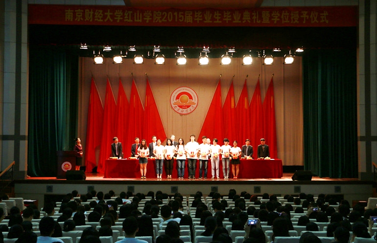 红山学院党委副书记杨华宣读《关于表彰红山学院2015届“优秀毕业生”的决定》,学院领导和老师为优秀毕业生代表颁奖。红山学院副院长陈明宣读了《关于同意李阳等2015名同学毕业的决定》,学院领导和老师为毕业生代表颁发了毕业证书。