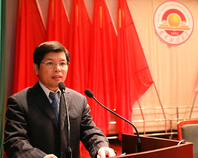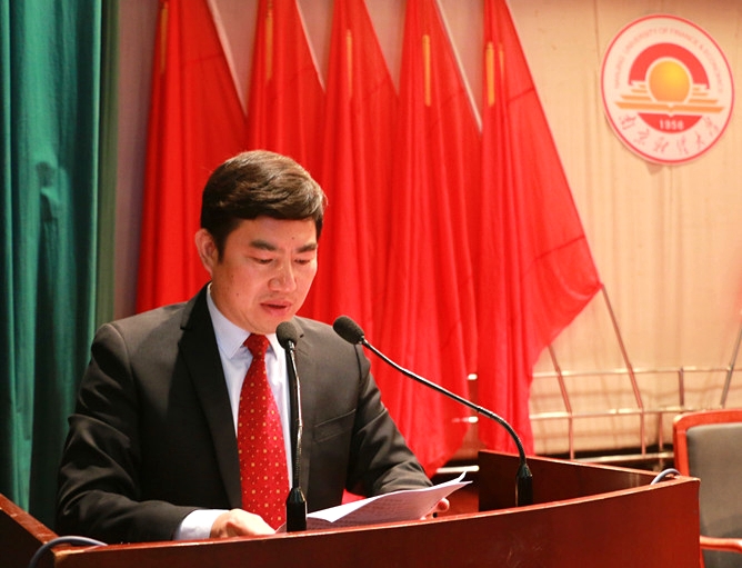 红山学院院长张进代表学院致辞,张院长从四个方面表达了对毕业生们的嘱托。第一,终身学习,积极进取。希望同学们始终保持旺盛的学习动力,不断提高自己的思想境界和学术水平,积极投身中国特色社会主义的伟大实践,努力把自己锤炼成德才兼备、知行并举、素质优良的一代新人;第二,脚踏实地,准确定位。希望同学们勇于迎接时代的挑战,培养全球视野和中国灵魂,在社会需要的大背景中选准自己的定位,实现人生的价值,在锤炼自我、发展自我的过程中服务社会,回报人民;第三,百折不挠,奋勇担纲。希望同学们坦然面对事业上、生活中的每一次成功与挫折,学会冷静地观察,慎重地抉择,自谦,自信,务实,超越,化理想为蓝图,用意志作砖瓦,以勤奋搭阶梯,努力构建成功的大厦;第四,关注母校,共同发展。今后,不论大家工作在什么地方,母校是你们永远的精神家园,而你们永远是红山学院最值得骄傲的儿女。希望同学们继续发扬母校的优良传统,为母校扩大社会影响、提升社会声望贡献力量。