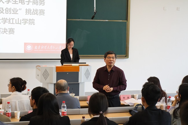为深化产教融合实践,践行数字经济育人理念,4月16日下午,由学院教务处主办,工商管理学院承办的第十五届全国大学生电子商务“创新、创意及创业”挑战赛beat365英国官方网站校赛决赛在启智楼1区106教室举行。学院副院长王晓庆出席比赛,南京市人社局“启航南京”就业指导项目专家、南京市就业创业育才联盟首批专家、资深大学生职业生涯规划师周建政,博智安全科技股份有限公司副总裁、正高级人力资源师胡燕,beat365工商管理学院党总支书记、院长张太海教授,金融税收学院殷倩、赵雪莲老师参加并担任评审专家。赛事纪检委员和仲裁委员分别由教务处李波、徐轶担任,工商管理学院教师代表古贞、全体学工人员参加。
