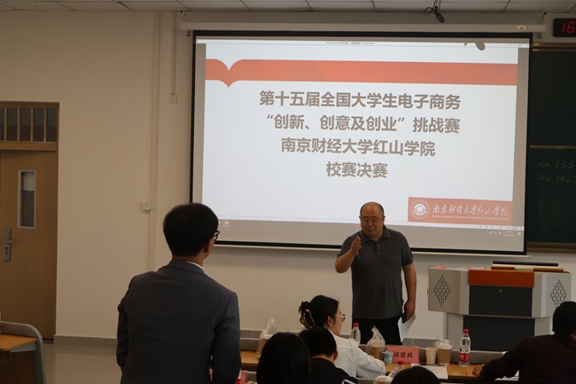 学院副院长王晓庆致辞。他指出,本次赛事既是连接理论教学与社会实践的关键纽带,也是检验学生专业能力的综合考场,更是培育创新创业精神的孵化平台。未来,学院将持续推进产教融合创新,通过政策支持、资源对接等举措,为红山学子搭建更广阔的创新创业舞台并预祝大赛圆满成功。