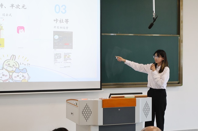 决赛现场,12支团队聚焦社会需求,带来覆盖非遗数字化传承、乡村振兴助农、跨境电商创新、智慧生活服务等多元领域的参赛项目。各团队通过精准的PPT演示、详实的案例分析及商业模式推演,生动呈现技术创新与商业逻辑的深度融合,彰显青年学子对时代命题的主动思考。评委围绕市场定位、盈利模式、风险防控等核心问题展开犀利提问,参赛团队凭借扎实的调研数据与逻辑清晰的商业规划从容应答,现场思辨氛围热烈。