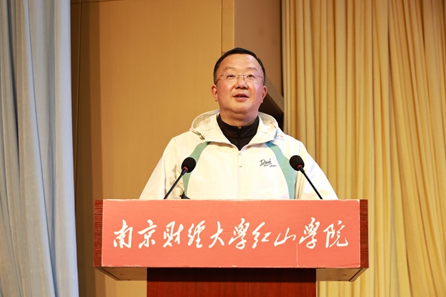 院长李连军作动员讲话。他首先回顾了学院搬迁至高淳以来,在师德师风建设领域取得的阶段性成果,为后续工作开展奠定基础。同时,他结合自身多年教学经历与当前教育行业发展的新形势、新要求,深入分析了全体教师在思想认知与实践行动层面仍需持续改进的方向,明确了提升路径。最后,李连军院长号召全体教师弘扬教育家精神,见贤思齐,始终牢记“为党育人、为国育才”的初心使命,为建设教育强国、推进民族复兴伟业贡献力量。