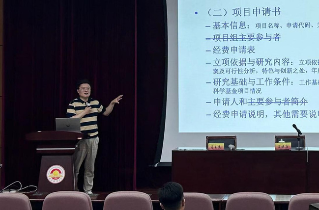 肖玉杰副教授以国家自然科学基金课题申报为例,介绍了国家科学基金类项目的类别与申报注意事项,并结合自身申报课题的感受与经验,论述了“为什么申报项目”“怎么申报项目”“项目成功靠什么”等关键问题。肖玉杰副教授重点就课题选题、申请代码、关键词、摘要、人员构成、研究方法、研究内容、创新与特色等方面,深入系统指导了课题申报的具体方法,并延伸到省部级课题、厅局级课题、学院课题等各级各类课题申报。