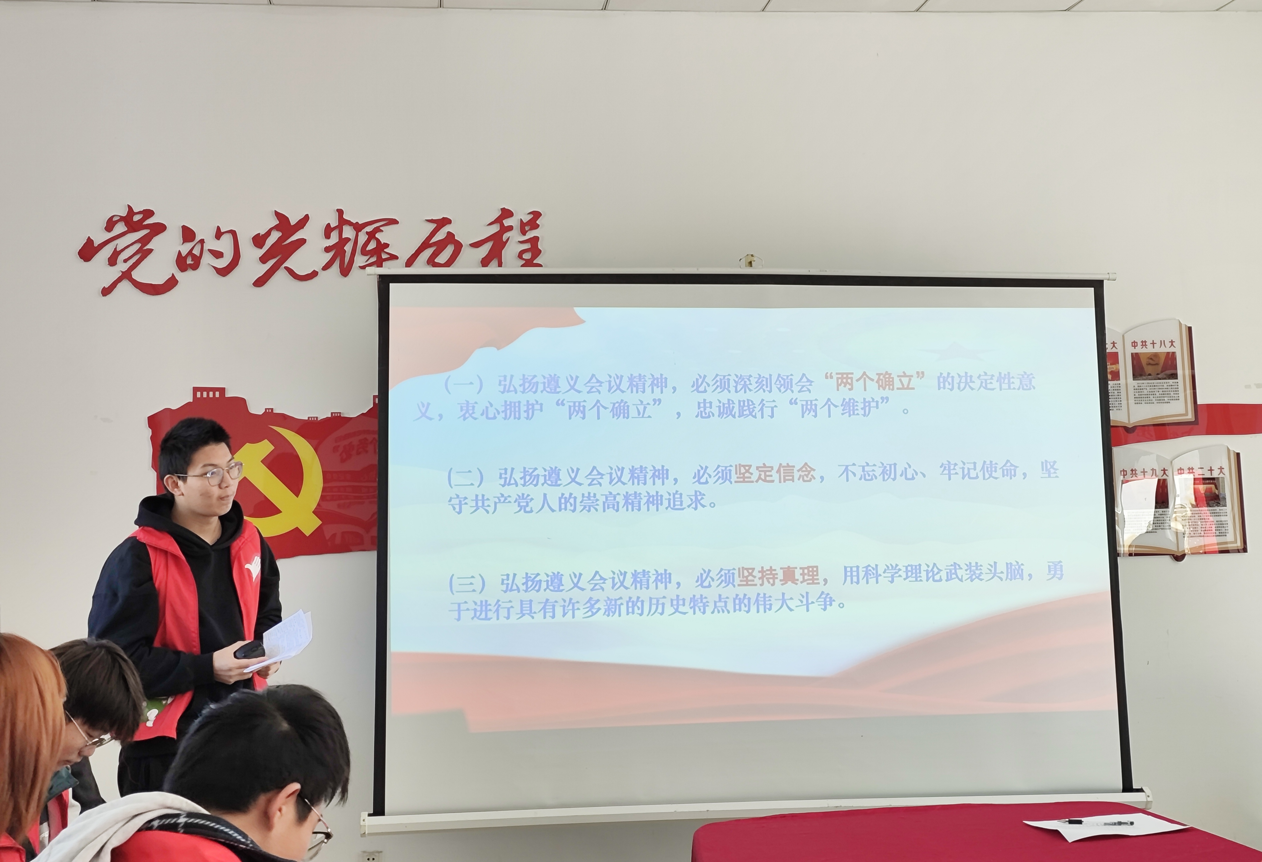最后,王颖副书记对本次活动做总结。她充分肯定了宣讲团成员们在上一阶段的付出和努力,并鼓励同学们从遵义会议精神中深刻感悟共产党人的初心和使命,传承红色基因,弘扬中国精神,以实际行动肩负起新时代青年的使命和担当,为祖国的繁荣富强贡献青春力量。