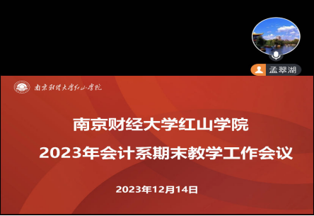 12月14日晚,我系召开2023年下半年全国大学英语四六级考试暨期末工作线上会议。会议由系主任孟翠湖教授主持,会计系全体专任教师、辅导员及行政人员参会。