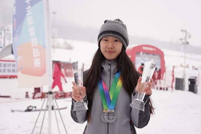 据了解,本届比赛共设高山滑雪大回转及单板滑雪平行大回转个人和团体等7个小项,分为甲组(普通组)、丙A组、丙B组三个组别,共有来自全国19个省、自治区、直辖市的44所高校400多名师生参赛。段逍然同学从全体参赛选手中脱颖而出,是唯一同时获得单板和双板奖牌的选手。