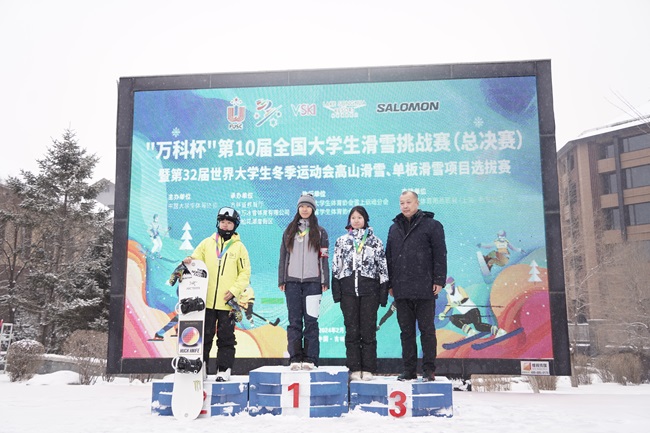 2月28日,由中国大学生体育协会主办、吉林省教育厅承办的第10届全国大学生滑雪挑战赛总决赛暨第32届世界大学生冬季运动会高山滑雪、单板滑雪项目选拔赛在吉林万科松花湖滑雪场圆满收官。