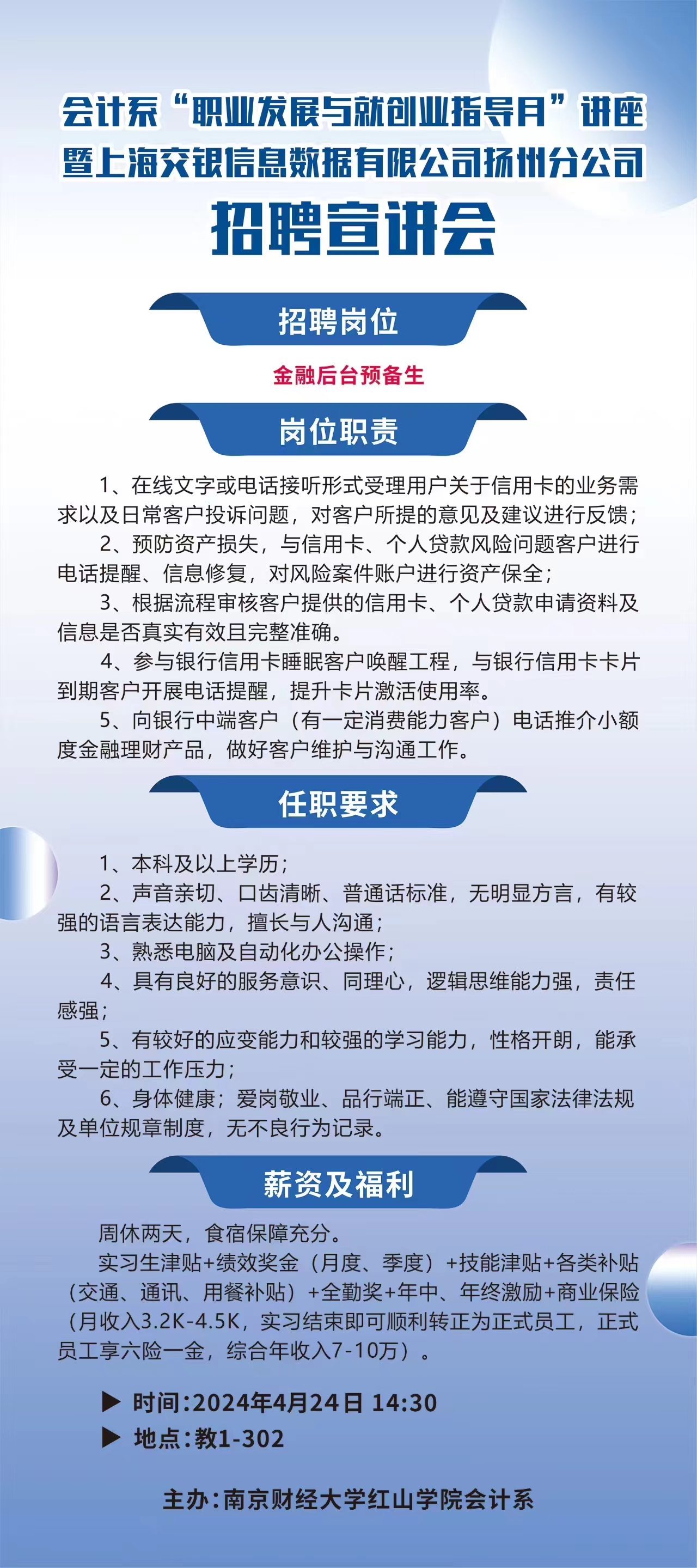 宣讲会丨上海交银信息数据有限公司扬州分公司招聘宣讲会