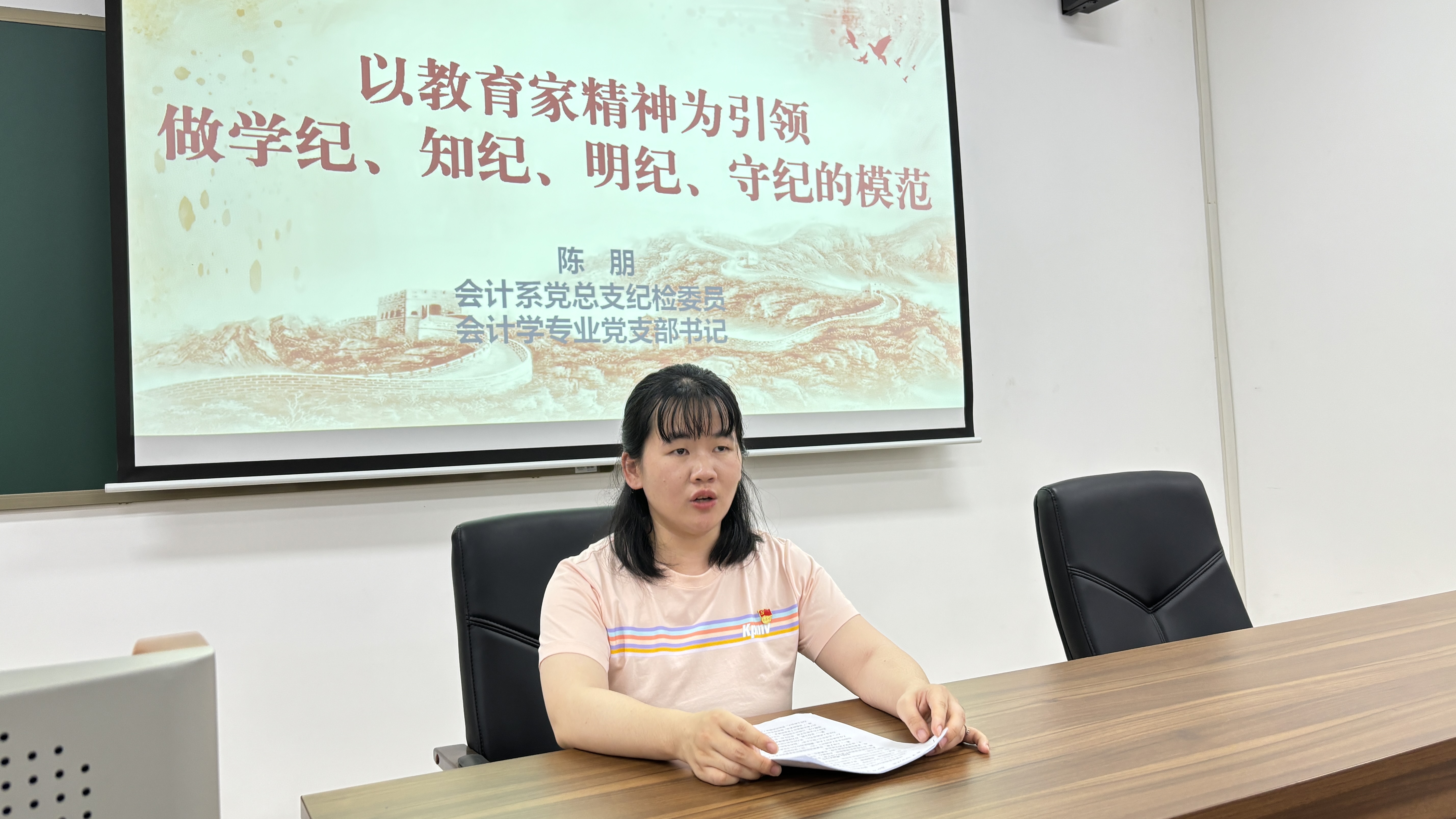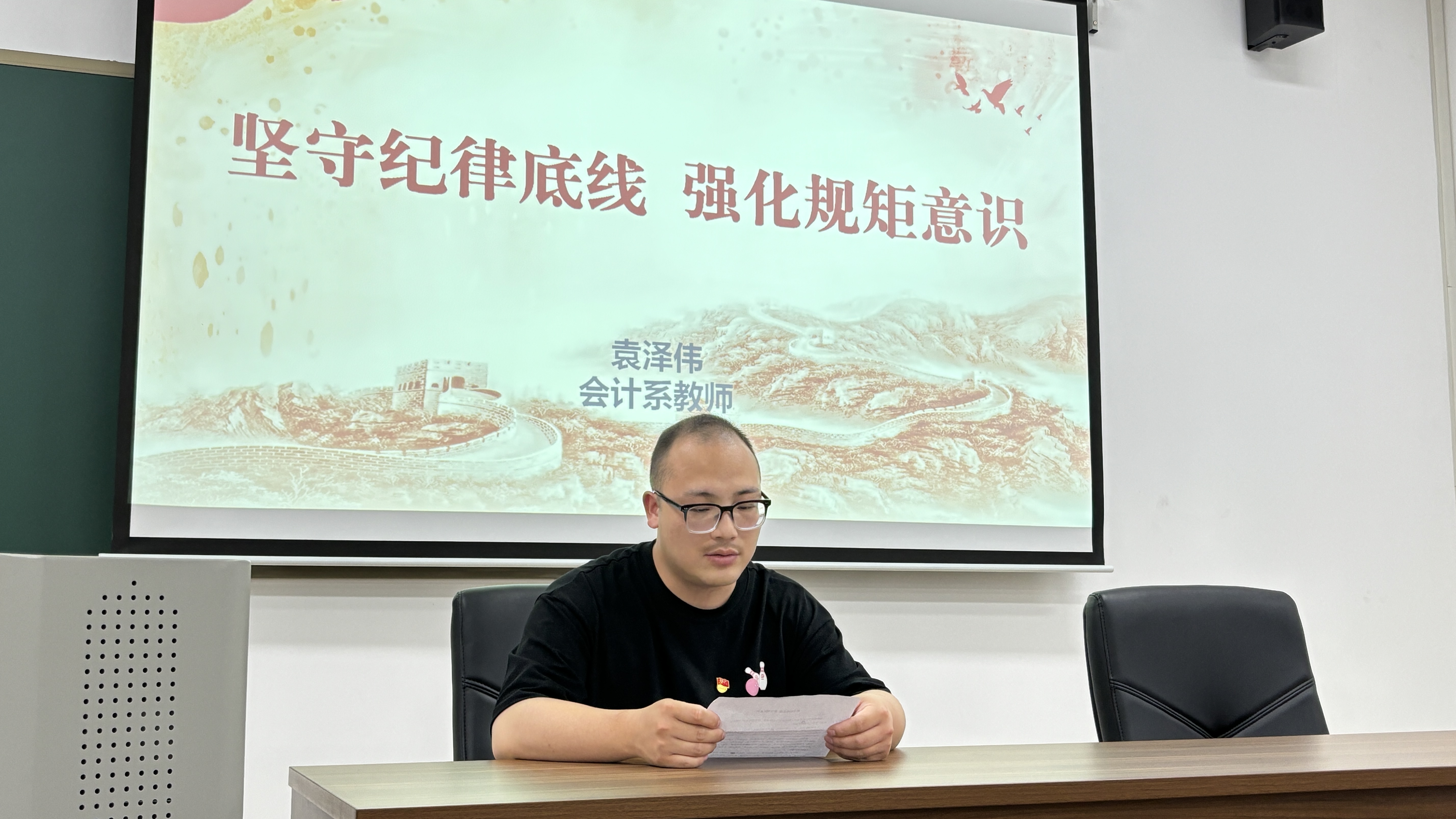 会计系党总支纪检委员、会计学专业党支部书记陈朋讲授微党课