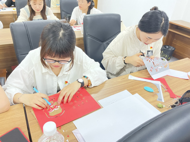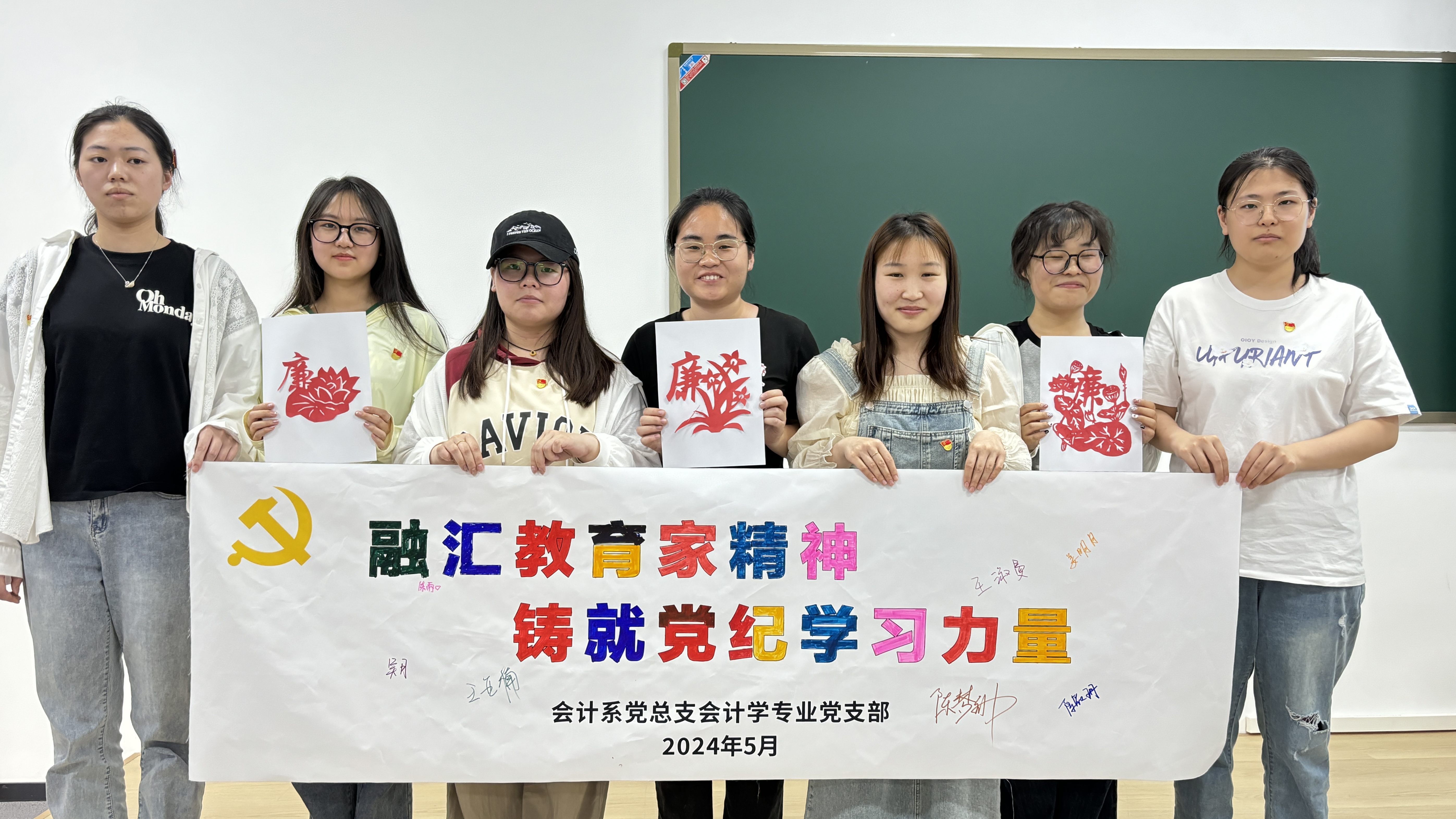 随后,师生党员共同签署了“学党纪 守廉心”承诺书,并分小组制作了主题画卷和剪纸。大家用一笔一划描绘党纪威严,用一刀一剪诠释“廉洁”正气,在感受传统艺术的乐趣的同时,加深了对党纪教育和廉洁文化的认识,营造了良好的廉洁自律的氛围。