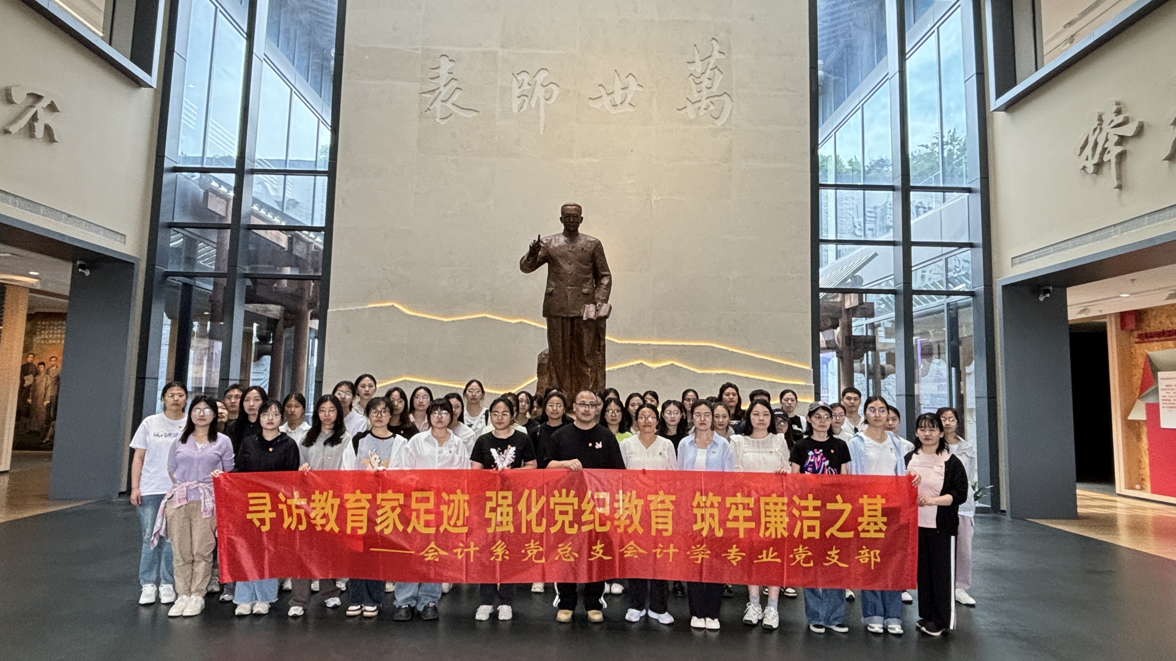 为深入学习贯彻习近平总书记的重要讲话和重要指示精神,扎实开展党纪学习教育,大力弘扬和践行“教育家精神”,教育引导师生明德知廉,树牢社会主义核心价值观,5月22日,会计系党总支会计学专业党支部全体师生党员赴南京陶行知纪念馆开展“寻访教育家足迹 强化党纪教育 筑牢廉洁之基”主题党日活动。