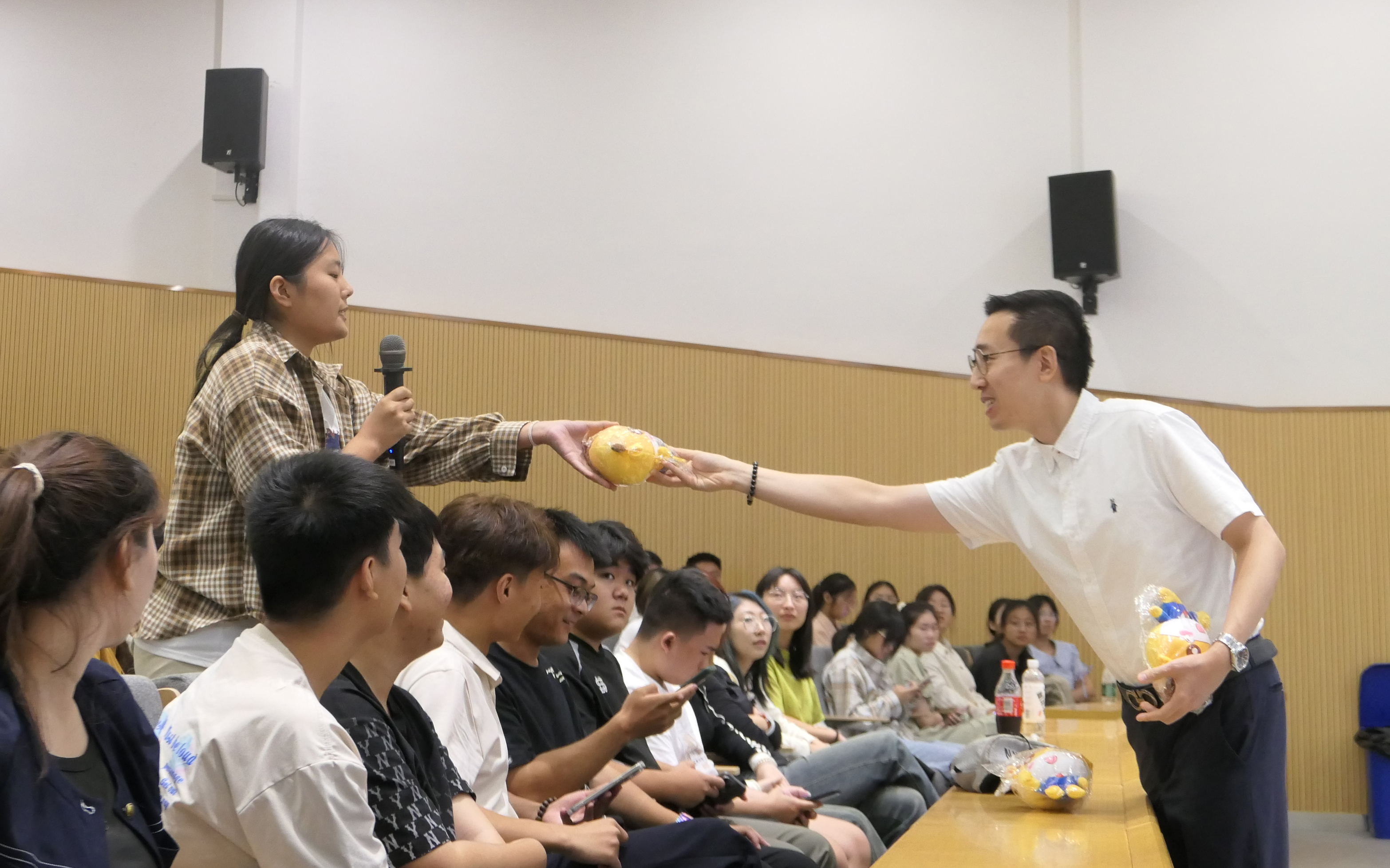 在互动环节,新生们踊跃举手提出问题并分享了自己对专业的认识和对职业规划的初步想法,万武教授和石阳磊先生热情地与同学们互动交流,鼓励同学们增强对专业的认同感和对未来职业选择的信心。