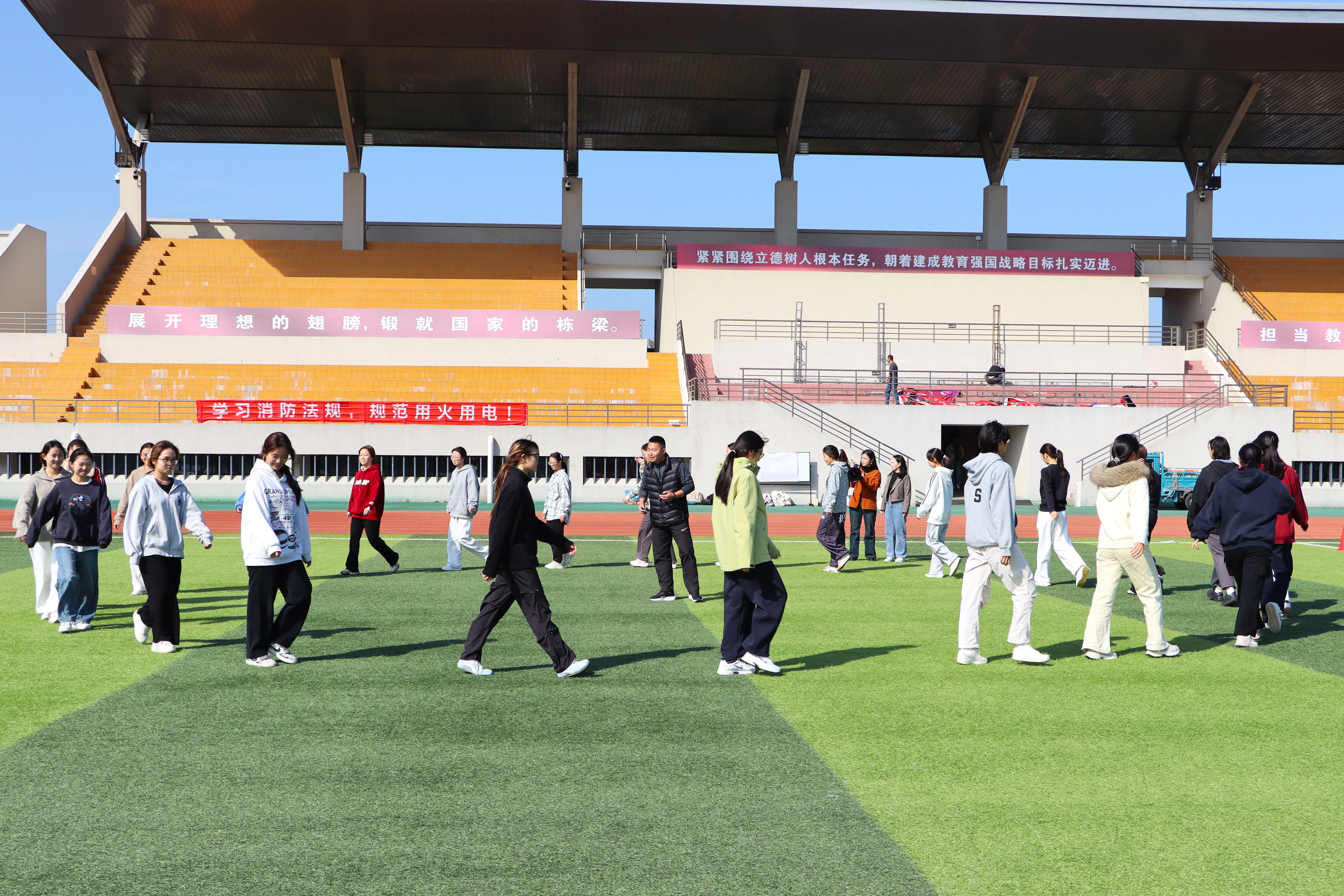 体育老师杨怀波指导学生热身