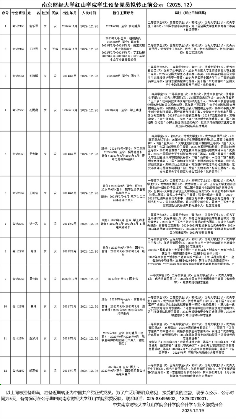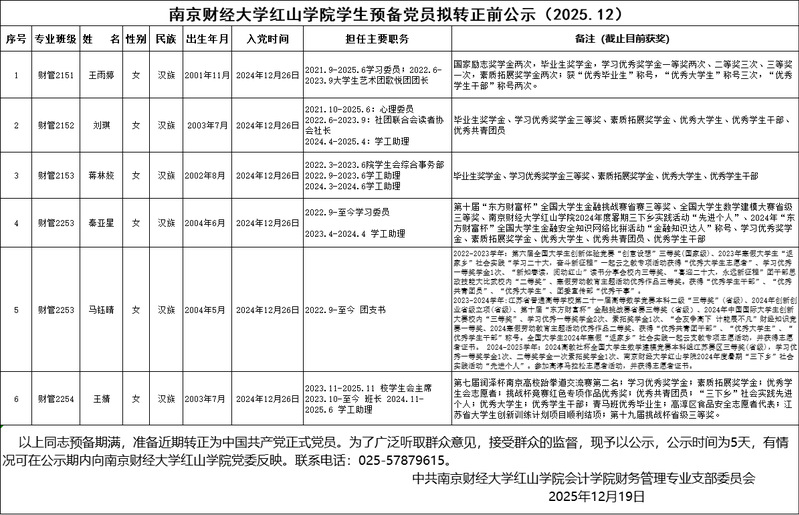beat365英国官方网站学生预备党员拟转正前公示(2025.12)