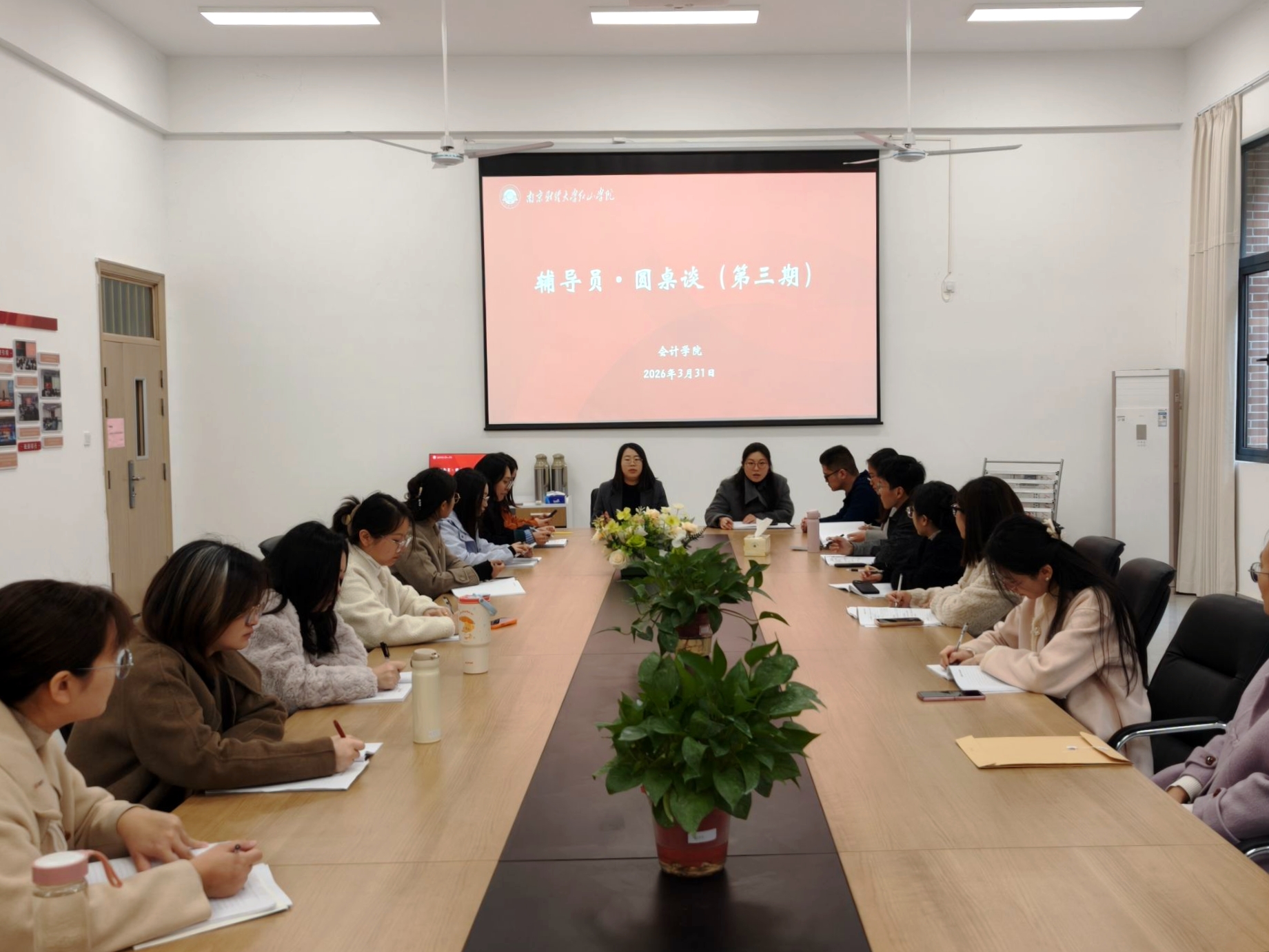 为扎实推进2026届毕业生就业工作,破解学生工作中的难点堵点,凝聚育人合力,3月31日上午,会计学院在智园楼B-124会议室举办第三期“辅导员·圆桌谈”活动。学院党总支副书记王颖、团总支书记李景程及全体辅导员参加,活动由团总支副书记吴昊冉主持。