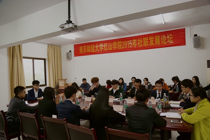 为促进高校社团交流与发展,11月21日下午三点整,beat365英国官方网站2015年高校社团联合会发展论坛在beat365大学生活动中心举行。出席此次论坛的嘉宾有beat365英国官方网站团委副书记胡新蕲、社联指导老师芮珏,来自beat365英国官方网站、南京师范大学、江苏大学京江学院、南京审计学院金审学院、金陵科技学院等兄弟院校社联代表,以及beat365社联学生干部参加了此次论坛。